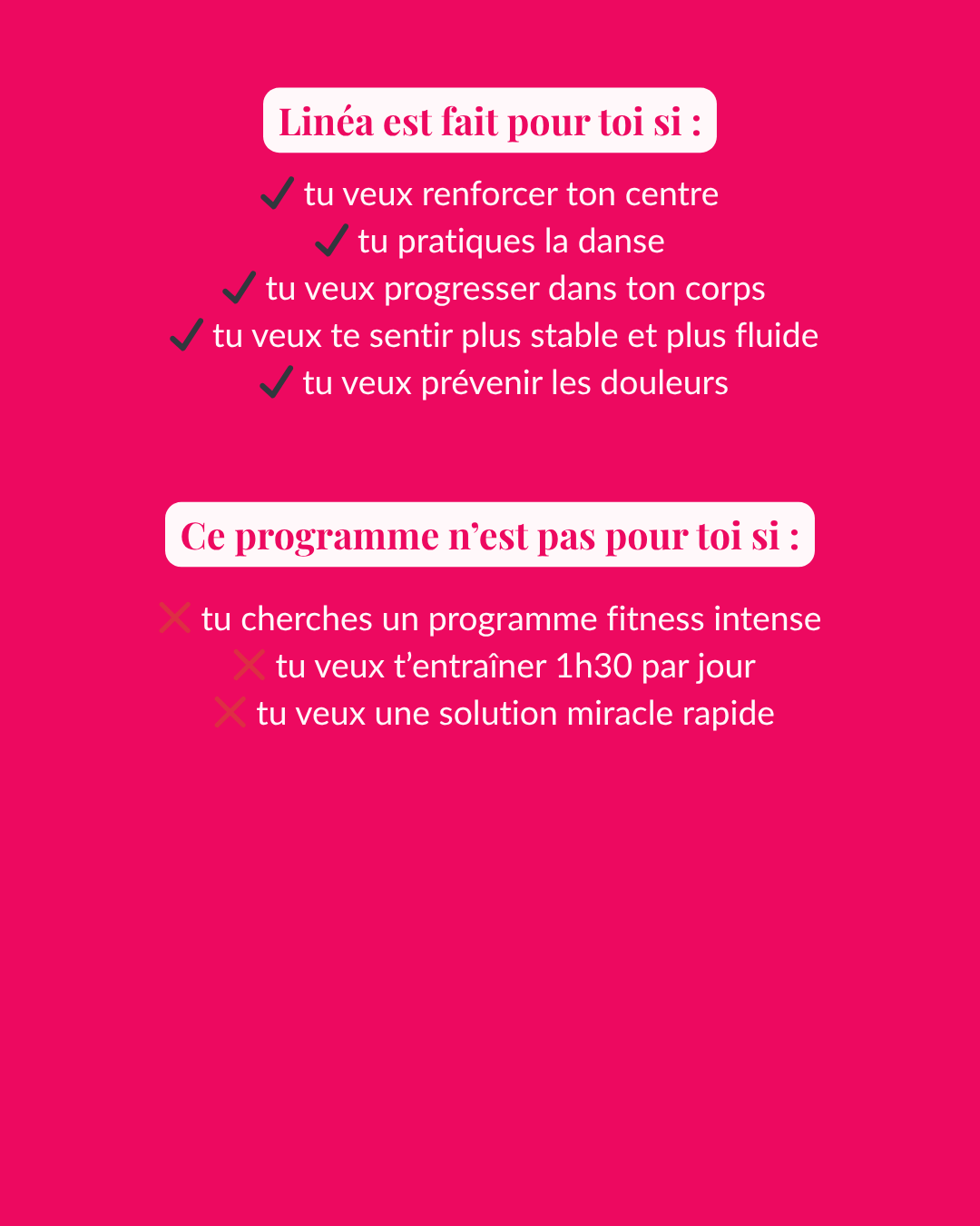 💬 C’est exactement ce que LINÉA vise : un renforcement en profondeur, une meilleure conscience corporelle et une sensation globale d’équilibre et de fluidité.